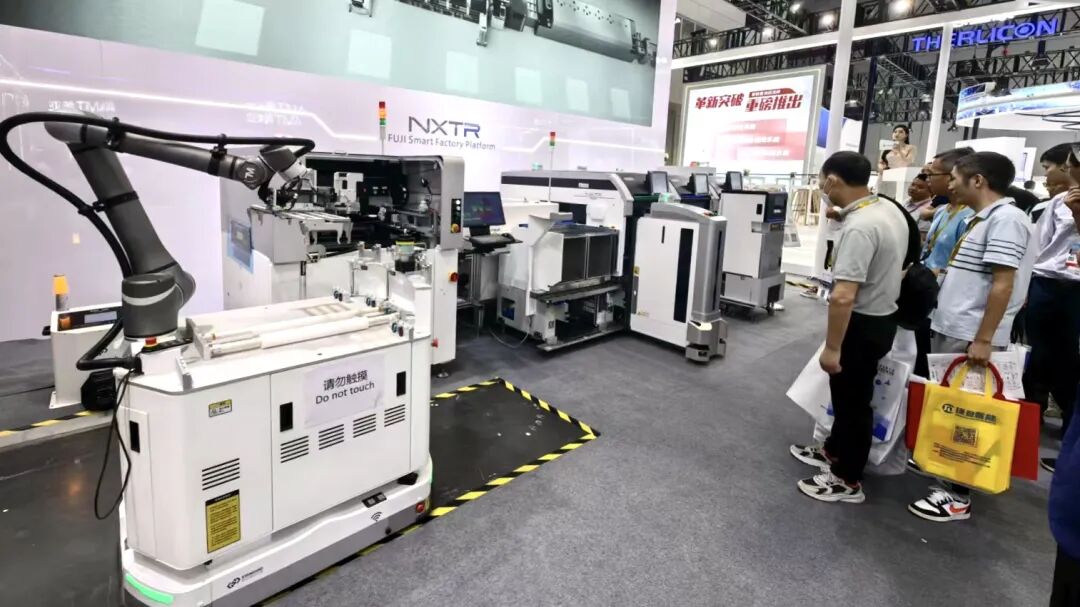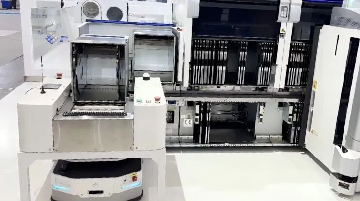 在2024年11月NEPCON ASIA亞洲電子展與2025年3月慕尼黑上海電子生產(chǎn)設(shè)備展上,斯坦德機(jī)器人分別攜不同產(chǎn)品與FUJI實(shí)現(xiàn)聯(lián)動:通過工業(yè)具身機(jī)器人LINK和背負(fù)式機(jī)器人OASIS-300E-SRL將供料器箱自動搬運(yùn)至FUJI最先進(jìn)的貼片機(jī)“NXTR A機(jī)型”,全程無需人工干預(yù)、運(yùn)行流暢穩(wěn)定,充分展現(xiàn)出雙方技術(shù)聯(lián)動的成熟度與實(shí)用性。