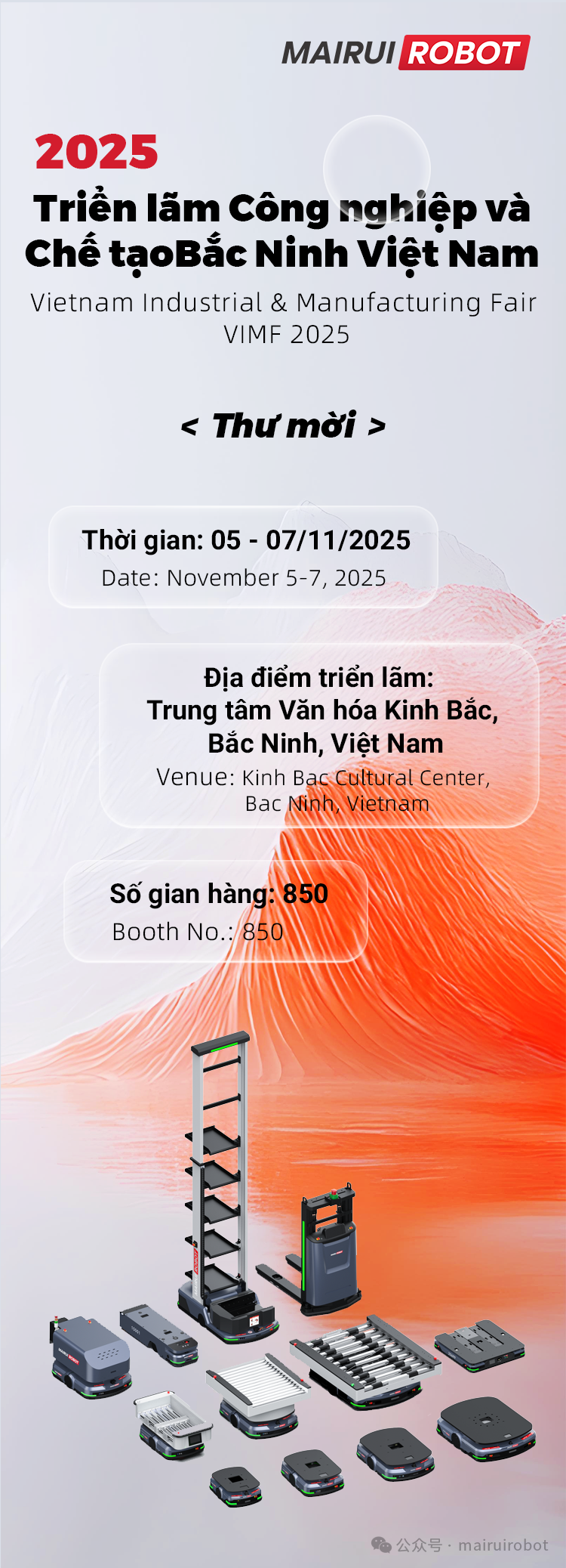 ?? 展會(huì)時(shí)間:2025.11.05-11.07?? 展會(huì)地點(diǎn):越南 北寧 KBCC 國(guó)際會(huì)展中心?? 邁睿展位:850