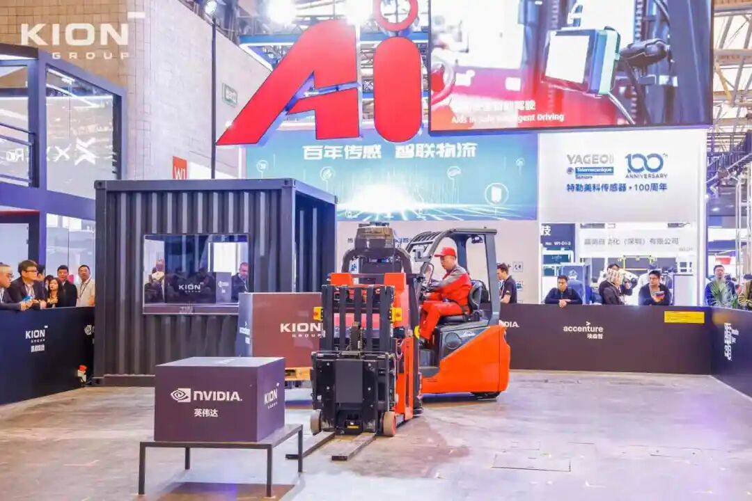 在AI創(chuàng)新空間區(qū),凱傲集團首次在亞洲展示了與英偉達、埃森哲攜手打造的未來倉庫模型。展區(qū)內,四輛正在作業(yè)的叉車,模擬著人機混合倉儲場景,還原入庫、儲存,再到出庫的全流程。通過AI攝像頭實時捕捉現(xiàn)場數(shù)據(jù),智能識別貨物類型并規(guī)劃路徑,讓整個區(qū)域高效順暢運行。與此同時,通過數(shù)字孿生技術,展區(qū)的實時動態(tài)1比1構建在虛擬世界中,并在現(xiàn)場大屏同步呈現(xiàn)。凱傲集團充分利用人工智能技術,全方位重塑物流系統(tǒng)的推演、感知與決策能力,為不同業(yè)態(tài)的客戶設計出未來倉庫的理想布局。