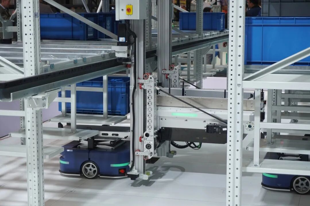 在現(xiàn)場設(shè)置的模擬產(chǎn)線中,閃電播與穿云箭形成“存儲-分揀”閉環(huán),完整展現(xiàn)了從入庫到出庫的全流程自動化作業(yè),吸引眾多制造企業(yè)代表駐足交流。