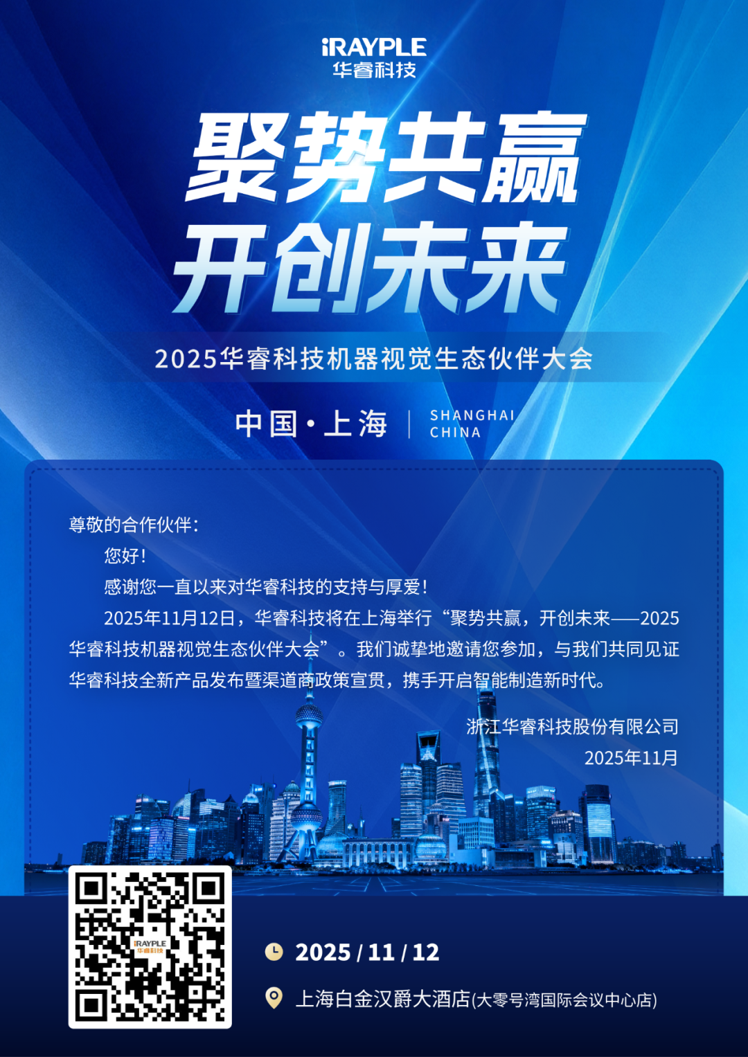 聚勢共贏,開創(chuàng)未來!2025年11月12日,華睿科技將于上海白金漢爵大酒店(大零號灣國際會議中心店)舉辦 “2025機(jī)器視覺生態(tài)伙伴大會”。誠邀行業(yè)同仁與合作伙伴齊聚一堂,共話智能制造新篇章!本次大會看點(diǎn)搶先看:- 生態(tài)伙伴招募 與 政策宣講- 智能產(chǎn)品 & 3D產(chǎn)品發(fā)布- 算法平臺 & 標(biāo)準(zhǔn)產(chǎn)品重磅亮相- 案例分享 & 新品動(dòng)態(tài)demo- 驚喜抽獎(jiǎng)不斷(飛利浦筋膜槍,小米充電寶,華睿定制雙肩包,華睿定制天堂傘)時(shí)間:2025年11月12日 13:30–17:30地點(diǎn):上海白金漢爵大酒店(大零號灣國際會議中心店)掃碼立即報(bào)名,現(xiàn)場更有精美禮品等您拿!