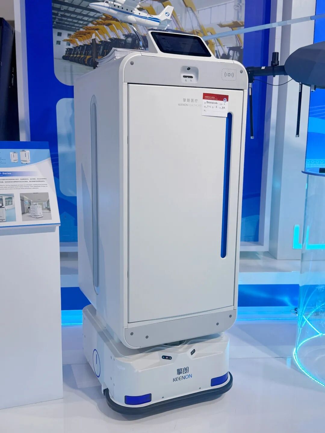 在人文交流展區(qū),擎朗醫(yī)療配送機(jī)器人M102可通過(guò)自主導(dǎo)航與多傳感器融合實(shí)現(xiàn)在復(fù)雜醫(yī)療場(chǎng)景下的精準(zhǔn)物資配送,為醫(yī)院提質(zhì)增效、數(shù)智化升級(jí)提供重要保障,代表了中國(guó)專(zhuān)業(yè)服務(wù)機(jī)器人出海的高技術(shù)水準(zhǔn),展現(xiàn)了在醫(yī)院物流這一高門(mén)檻領(lǐng)域的國(guó)際競(jìng)爭(zhēng)力。