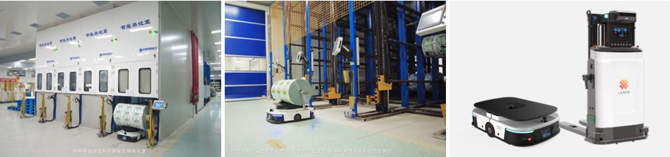 通過AMR串聯(lián)原料倉庫→印刷→立庫→復(fù)合→熟化→分切→打包→成品庫等生產(chǎn)區(qū)域,實現(xiàn)卷膜的全自動出入庫、半成品周轉(zhuǎn)、上下料,實現(xiàn)生產(chǎn)的全部自動化和數(shù)字化,打造江蘇省包裝行業(yè)首個5G智能工廠。