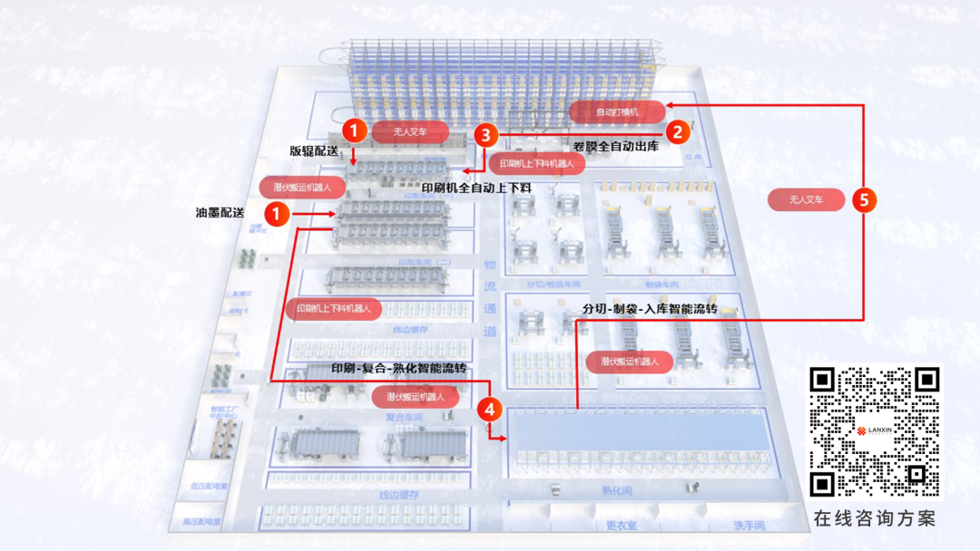 ▲軟包裝智慧工廠物流動線