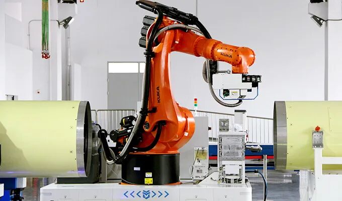 搭載激光視覺(jué)引導(dǎo)與實(shí)時(shí)補(bǔ)償系統(tǒng),全向移動(dòng)系統(tǒng)定位精度10毫米,可自主移動(dòng)至加工工位,制孔機(jī)器人可自主標(biāo)定作業(yè)基準(zhǔn),建立加工坐標(biāo)系,修正機(jī)器人與工件的空間誤差,實(shí)現(xiàn)全程自主制孔,還可自動(dòng)檢測(cè)孔徑誤差、實(shí)時(shí)記錄加工質(zhì)量,完美適配大曲率壁板及蒙皮鉆孔加工,徹底解決 “高精度高柔性依賴人工”的難題。