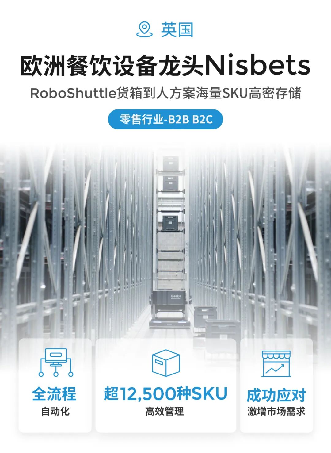 在英國,為歐洲餐飲設(shè)備龍頭Nisbets打造英國智能倉儲中心,引入190臺自主移動機器人實現(xiàn)從入庫到出庫全流程自動化,高效管理超12,500種SKU,顯著提升倉儲運營效率、靈活性和訂單處理能力,有效應(yīng)對激增的市場需求,為全球餐飲設(shè)備行業(yè)樹立新標桿。