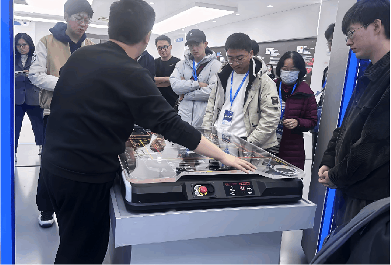 活動伊始,仙工智能聯(lián)合創(chuàng)始人兼 CEO 趙越在一樓展廳全面介紹了仙工智能平臺化建設(shè)的成果,以及在汽車、3C、新能源、工程機械等 20+ 行業(yè)的一站式解決方案。通過多款機器人動態(tài)演示和 3D 軟件互動體驗,生動呈現(xiàn)了機器人技術(shù)在實際場景中的應用,為同學們建立起對產(chǎn)業(yè)一線的直觀認知。