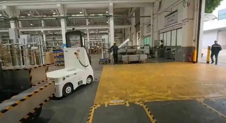 該企業(yè)作為電梯行業(yè)的領(lǐng)軍者,擁有多個(gè)生產(chǎn)車間和大型園區(qū)。生產(chǎn)過程中,大型部件如電梯壁板需要在不同車間之間頻繁轉(zhuǎn)運(yùn)。傳統(tǒng)人工牽引方式不僅效率低下,還存在安全隱患,轉(zhuǎn)運(yùn)路徑環(huán)境復(fù)雜——室內(nèi)是金剛砂地面,室外為水泥路面,途中還需應(yīng)對(duì)7度斜坡的挑戰(zhàn)。特別是在早上8-10點(diǎn)的搬運(yùn)高峰時(shí)段,廠區(qū)十字路口經(jīng)常出現(xiàn)擁堵,影響整體生產(chǎn)節(jié)奏。企業(yè)急需一種能夠適應(yīng)復(fù)雜環(huán)境、實(shí)現(xiàn)自動(dòng)化轉(zhuǎn)運(yùn)的解決方案,以提升整體物流效率與安全性。