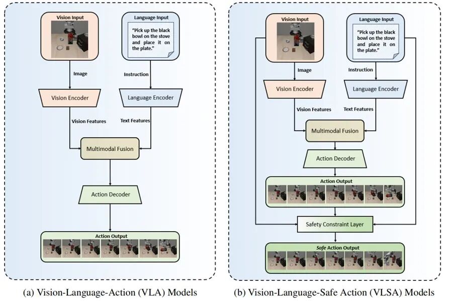 在大模型驅(qū)動(dòng)的具身智能浪潮中,VLA(Vision-Language-Action)模型憑借強(qiáng)大的語義理解與任務(wù)泛化能力,正成為下一代通用機(jī)器人的核心引擎。但現(xiàn)實(shí)很骨感:“聽得懂”不等于“做得對”,更不等于“做得安全”。許多VLA系統(tǒng)在仿真中表現(xiàn)驚艷,一旦部署到真實(shí)環(huán)境,卻因缺乏對物理世界的“敬畏之心”而頻頻“硬碰硬”--輕則打翻物料、中斷任務(wù),重則損壞工廠設(shè)備、危及人員。越聰明的模型,潛在風(fēng)險(xiǎn)反而越高。