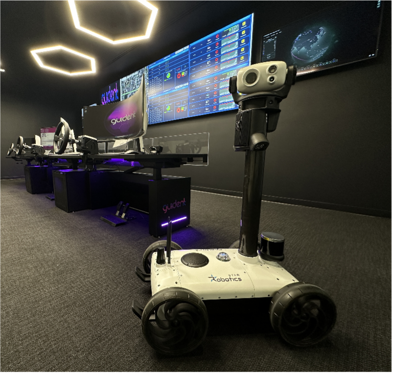 值得注意的是,RMCC并不只服務“車”。Guident還推出用于巡檢與安防的美國WatchBot機器人:按其公開參數(shù),該平臺具備IP65防護等級,最高速度約5 km/h,續(xù)航約8小時;配置多路1080P攝像頭,并集成熱成像(320×256)與激光雷達等傳感器組合,用于設施巡檢、周界安防與遠程處置等任務。這也呼應了《UK Investor Magazine》對應用外延的判斷:從倉儲AMR、人行道配送機器人到園區(qū)接駁與工業(yè)現(xiàn)場設備,遠程“任務控制”正逐步成為規(guī)?;\營的共同依賴。