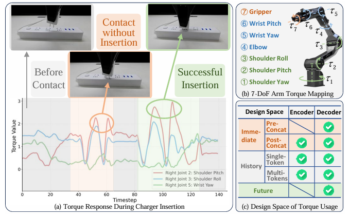 該工作不僅提出方法,更系統(tǒng)探索了扭矩信號(hào)如何有效融入VLA模型的設(shè)計(jì)空間,得出三條重要原則: