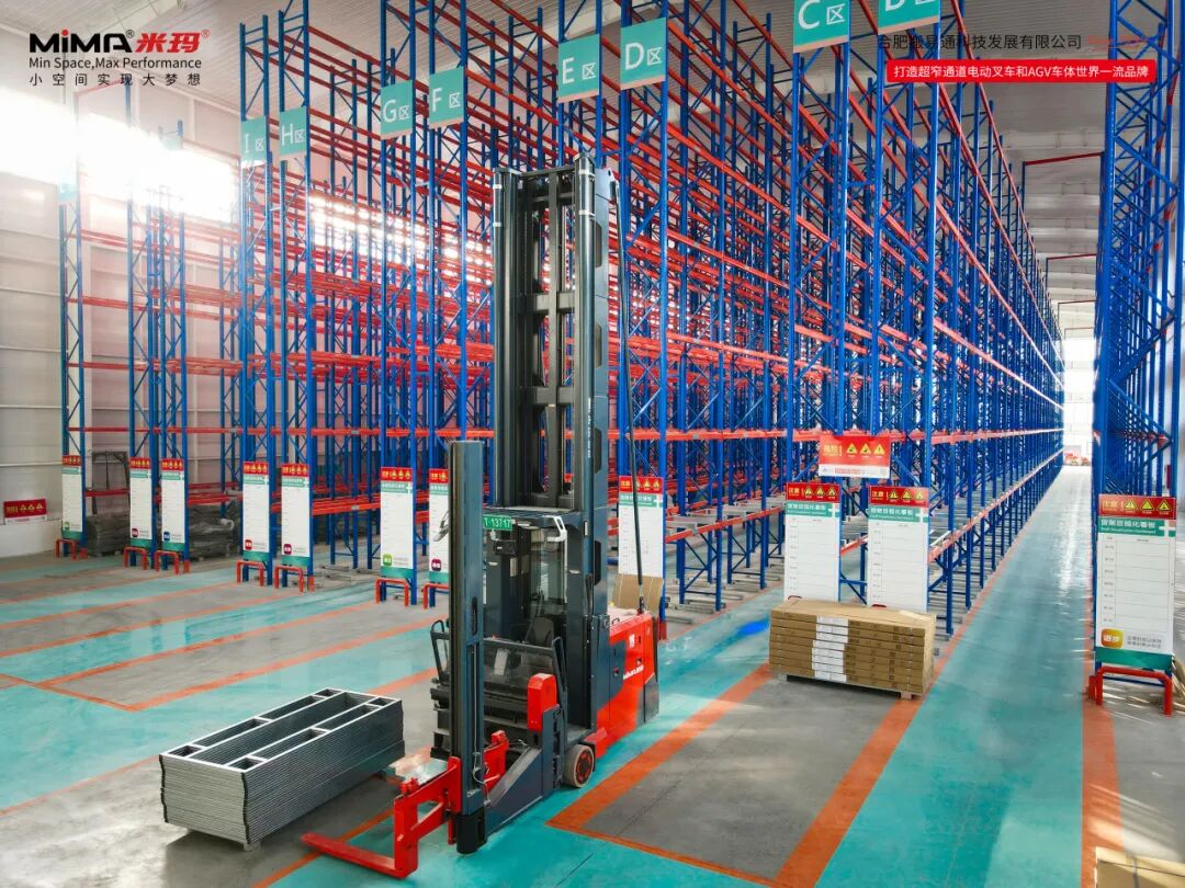 MiMA MCC16專為超窄通道設(shè)計(jì),額定載重1.6噸,通道寬度僅需1.65米,標(biāo)準(zhǔn)起升高度可達(dá)14.2米,定制高度可達(dá)18.5米。該案例中MCC16的額定載重為1.1噸,根據(jù)客戶需求定制加寬貨叉架,起升高度定制至12米(對(duì)貨叉寬度、起升高度如有更高需求可非標(biāo)定制),充分利用倉(cāng)庫(kù)垂直空間,大幅提升倉(cāng)儲(chǔ)密度,有效降低客戶的場(chǎng)地成本。其優(yōu)化的車(chē)身結(jié)構(gòu)與轉(zhuǎn)向系統(tǒng),能靈活應(yīng)對(duì)復(fù)雜工況,完美適配密集存儲(chǔ)需求 。
