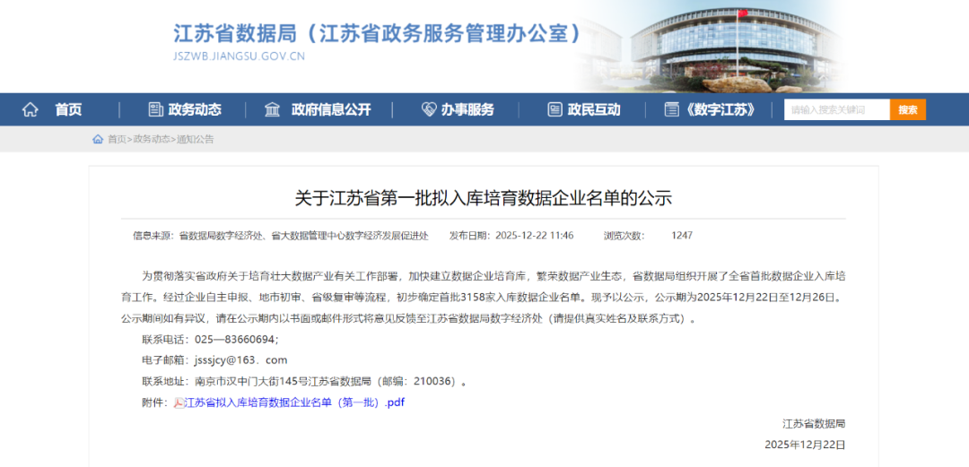 江蘇省第一批擬入庫培育數(shù)據(jù)企業(yè)