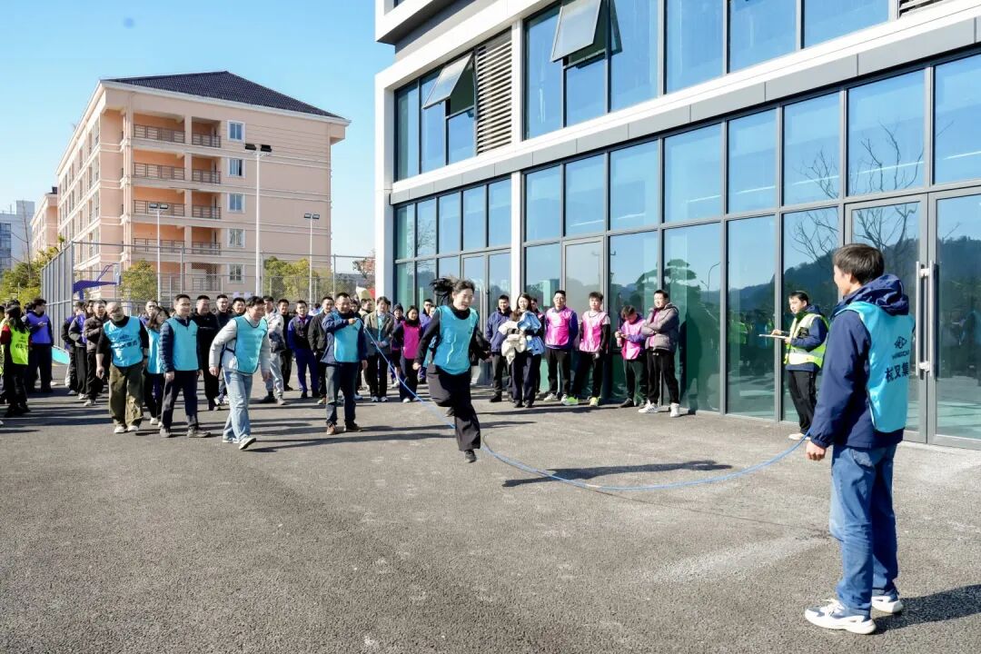 與緊張激烈的技能比武交相輝映,由集團(tuán)工會和黨群辦組織的2025年度趣味運(yùn)動(dòng)會也在同日的青山、橫畈園區(qū)籃球場歡樂上演。運(yùn)動(dòng)會設(shè)有投籃、跳繩、套圈圈等個(gè)人項(xiàng)目,以及“4*100米混合接力”、“龍行天下”、“八字繩”、“同心擊鼓”、“摸石頭過河”等需要高度協(xié)作的團(tuán)體項(xiàng)目。各分工會組成的代表隊(duì),在輕松活潑的賽場上揮灑汗水、默契配合,加油聲、歡笑聲此起彼伏。這場運(yùn)動(dòng)會不僅有效緩解了員工的工作壓力,豐富了業(yè)余文化生活,更進(jìn)一步增強(qiáng)了團(tuán)隊(duì)凝聚力與歸屬感,為嚴(yán)肅的技能競賽日注入了輕松愉快的氛圍,體現(xiàn)了公司對員工身心健康的關(guān)懷。