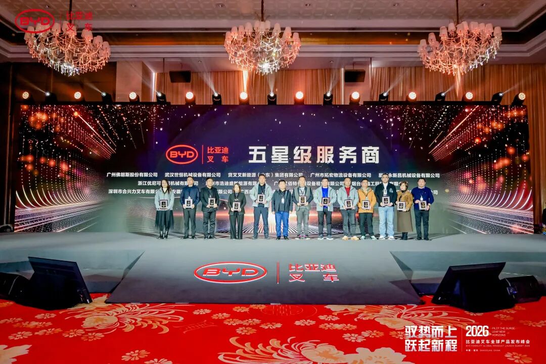 合作是開拓進(jìn)取的底氣,在過去的2025年比亞迪叉車與眾位共攜手,在機(jī)遇與挑戰(zhàn)中奮進(jìn),不畏艱難、馭勢(shì)而上,用品質(zhì)與服務(wù)贏得市場(chǎng)的認(rèn)可,并取得了驕人的成果。此次大會(huì)比亞迪叉車特授予廣州佛朗斯股份有限公司、武漢世恒機(jī)械設(shè)備有限公司戰(zhàn)略合作伙伴獎(jiǎng)。