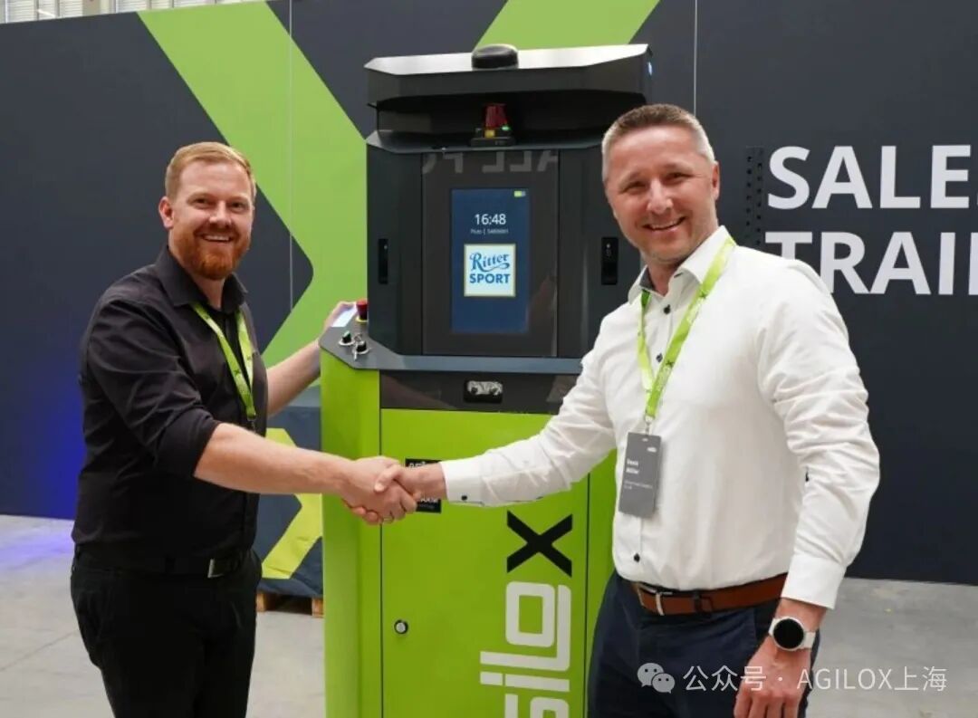 我們的合作之旅始于2023年,當(dāng)時(shí)進(jìn)行了首次洽談和產(chǎn)品演示——而今年,在????????????自動(dòng)化日上,雙方正式簽署了合作協(xié)議??吹脚d趣轉(zhuǎn)化為合作,這真是太棒了,AGILOX滿懷期待,希望早日見(jiàn)證我們的智能系統(tǒng)在Ritter Sport的生產(chǎn)線上大放異彩。