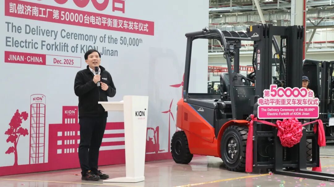 2025年12月,凱傲濟(jì)南工廠迎來發(fā)展歷程中的重要里程碑——第50000臺叉車成功發(fā)車。凱傲集團(tuán)董事、首席技術(shù)官、ITS亞太區(qū)總裁郭進(jìn)鵬先生、凱傲亞太運(yùn)營副總裁、凱傲濟(jì)南總經(jīng)理謝家華先生、凱傲ITS亞太研發(fā)及模塊開發(fā)副總裁許乃江先生、凱傲亞太采購副總裁龔宏彬先生與優(yōu)秀合作伙伴代表,以及凱傲濟(jì)南團(tuán)隊(duì)共同見證了這一歷史性時(shí)刻。