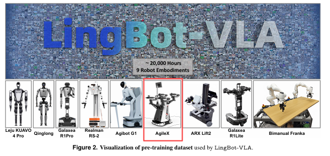 LingBot-VLA的底氣,來自于包括AgileX C OBOT MAGIC在內(nèi)的9種主流雙臂機器人構(gòu)型的真機操作數(shù)據(jù)。團隊累計采集了近2萬小時的真實世界操控數(shù)據(jù),涵蓋擺盤、插花、擰螺絲等多樣化任務(wù)場景。
