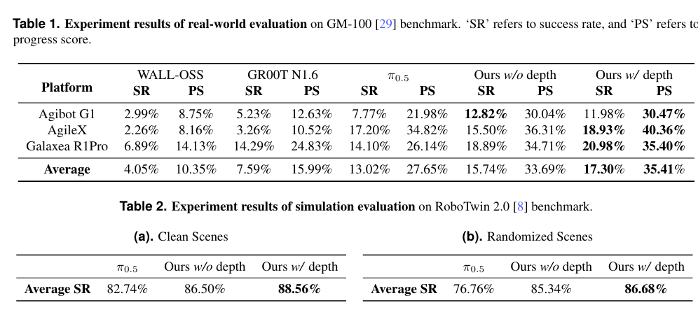 3.空間感知增強:通過視覺蒸餾技術(shù),將深度信息融入模型。這彌補了傳統(tǒng)VLA模型空間推理能力的短板,讓機器人在抓取、堆疊等精細(xì)操作中更精準(zhǔn)。