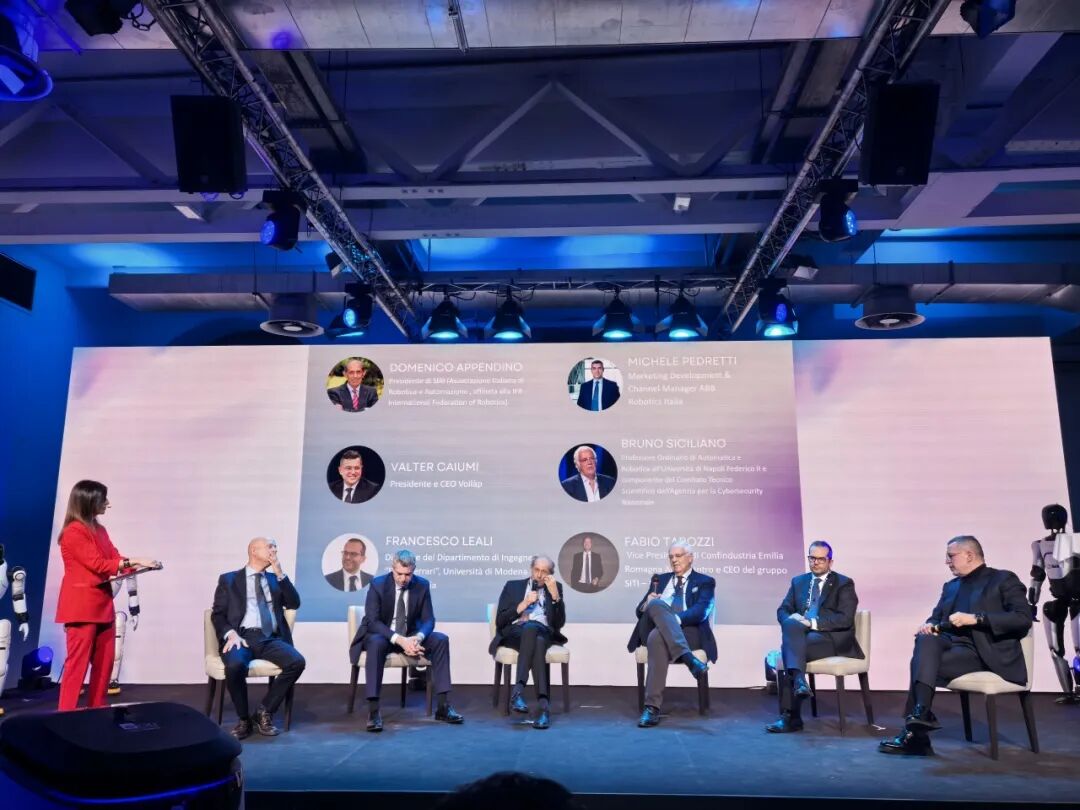 在專題討論環(huán)節(jié),來(lái)自摩德納大學(xué)、那不勒斯大學(xué)的學(xué)術(shù)界代表,意大利工業(yè)機(jī)器人協(xié)會(huì)主席,以及艾米拉大區(qū) SITI 集團(tuán)、ABB Italy等當(dāng)?shù)仡I(lǐng)軍企業(yè)高管,圍繞“人形機(jī)器人在歐洲工業(yè)4.0中的角色與挑戰(zhàn)”展開(kāi)深度對(duì)話,共同探討具身智能機(jī)器人在工業(yè)、科研及更廣泛社會(huì)領(lǐng)域的未來(lái)發(fā)展前景,以及其對(duì)歐洲市場(chǎng)格局與產(chǎn)業(yè)升級(jí)所帶來(lái)的深遠(yuǎn)影響。
