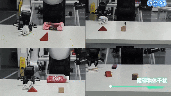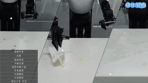 本次測評中,零次方參加了極具空間清潔代表性的“清潔場景—桌面擦拭”任務。這不僅要求機器人能夠“看見”污漬,更要求其具備精準的抓取策略與動態(tài)規(guī)劃能力。