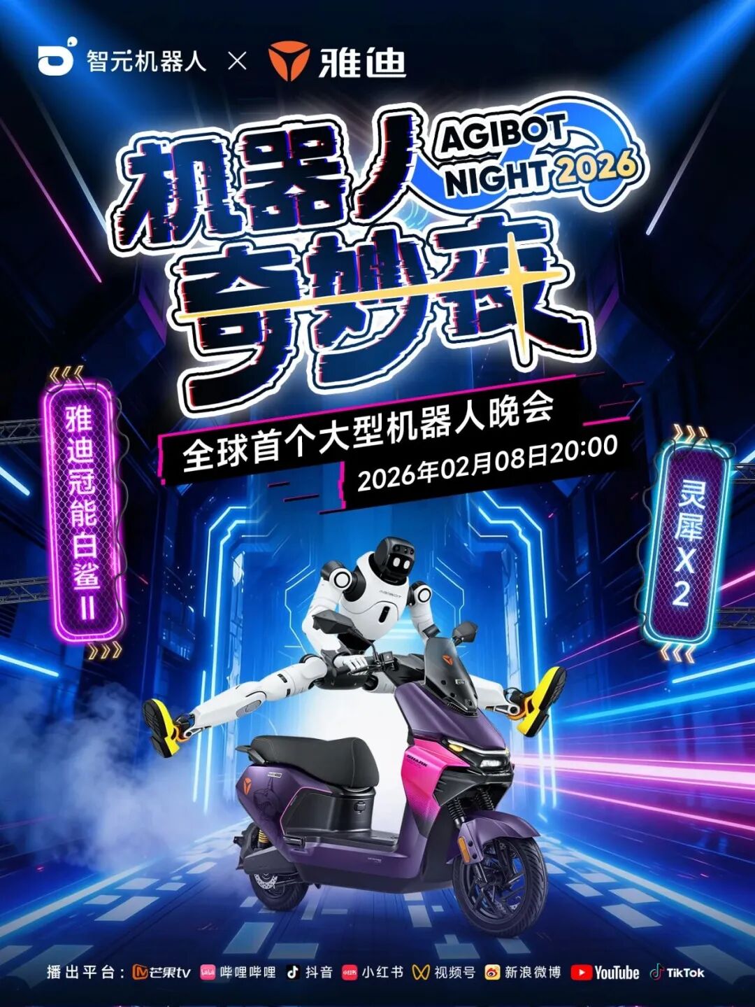 全球首個(gè)大型機(jī)器人晚會(huì) #機(jī)器人奇妙夜來(lái)了!智元攜手一眾大咖伙伴:? @AUX奧克斯空調(diào) ? @百事中國(guó)? @大話西游手游 ? @FILA_KIDS? @蜜雪冰城 ? @名創(chuàng)優(yōu)品? @M豆-逗趣家族 ? @美宜佳? @開(kāi)心麻花 ? @首形科技 ? @雅迪電動(dòng)車一起搞大事!??? 2月8日 20:00?? 鎖定 @智元AGIBOT 直播間?? #看機(jī)器人奇妙夜直播贏大獎(jiǎng)#我們不見(jiàn)不散!????一起嗨??
