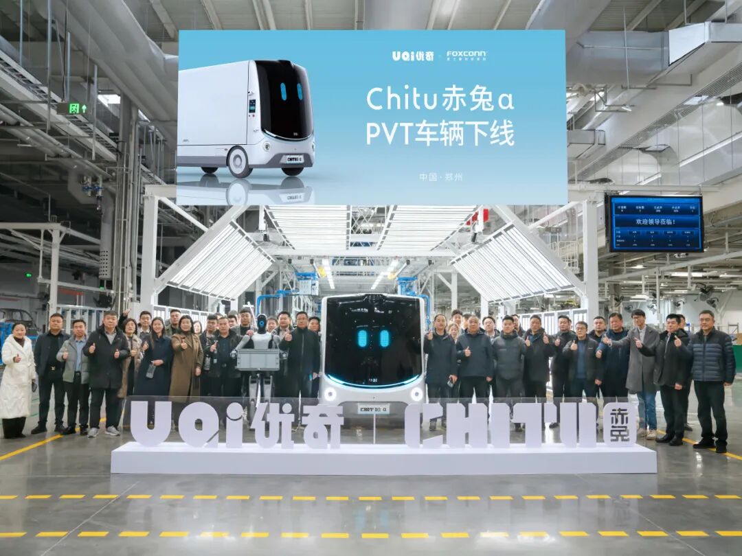 2月4日,優(yōu)必選旗下智慧物流子公司UQI優(yōu)奇無人物流車Chitu赤兔α在位于鄭州的富士康新能源汽車研發(fā)中心完成首批PVT(Production Validation Test)車輛的正式下線。