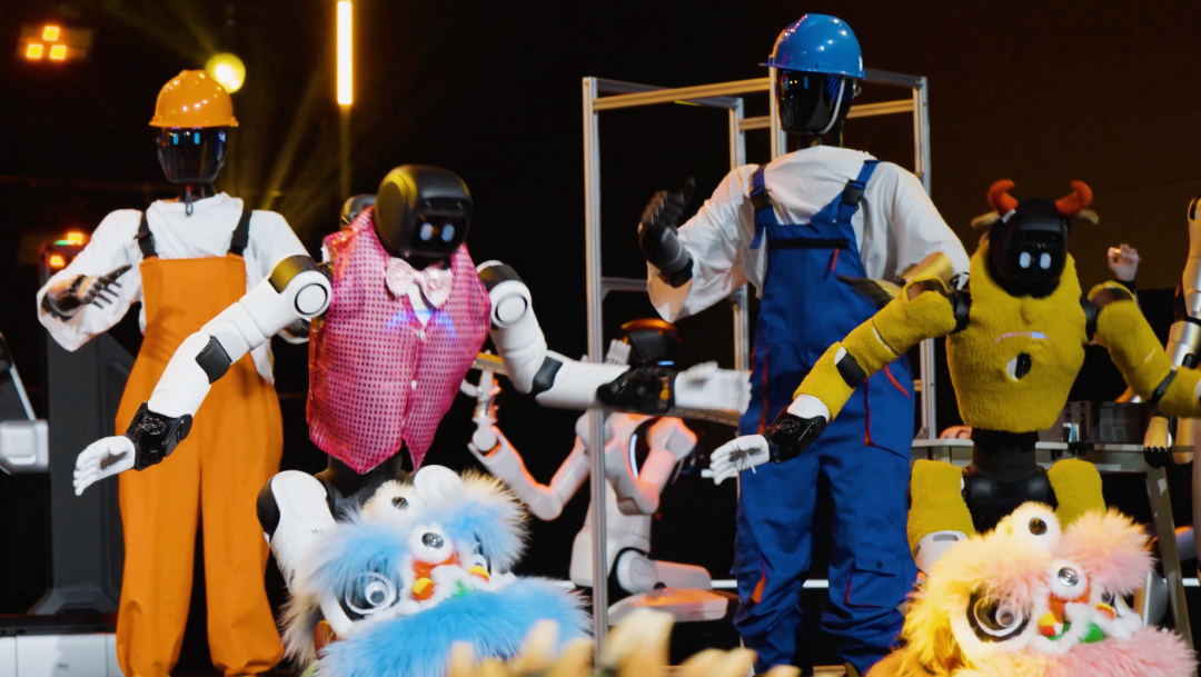 此外,晚會細節(jié)處更藏溫暖巧思:手語翻譯機器人為聽障人群提供無障礙觀演服務,讓科技惠及更多群體;精靈G2 “小彩旗” 復刻 12 年前馬年春晚經典旋轉動作,串聯(lián)時代回憶,傳遞出真摯的新春祝福。《萌寵機甲派對秀》里,四足機器人化身熊貓、小馬,與 “人類幼崽” 共舞,展現(xiàn)人機共生的溫馨場景。