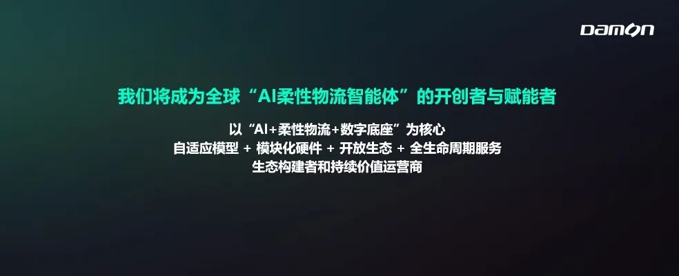 2026年,德馬將正式開啟全球AI智能體產(chǎn)業(yè)化新紀(jì)元,核心定位從智能物流設(shè)備和系統(tǒng)的提供者,全面升級為AI賦能的物流智能體創(chuàng)造者、端到端無人化物流整體解決方案的設(shè)計(jì)師和建造師,并立志成為全球“AI柔性物流智能體”的開創(chuàng)者與賦能者。德馬將以“AI+柔性物流+數(shù)字底座”為核心,立足智慧物流行業(yè),從核心部件、具身本體到數(shù)據(jù)模型、應(yīng)用場景落地,構(gòu)建“自適應(yīng)模型+模塊化硬件+開放生態(tài)+全生命周期服務(wù)”完整的具身AI生態(tài)體系,做物流行業(yè)具身AI的持續(xù)價(jià)值運(yùn)營商。