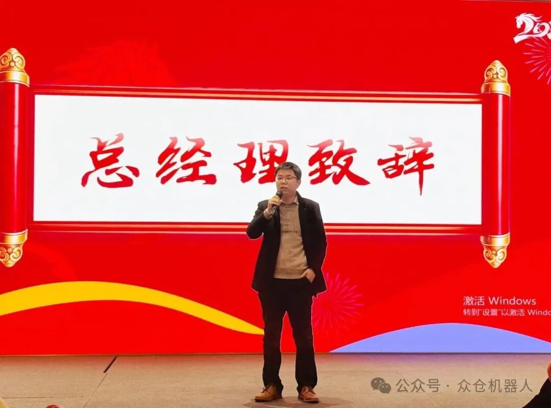 年會伊始,眾倉機(jī)器人總經(jīng)理王煒上臺致辭。