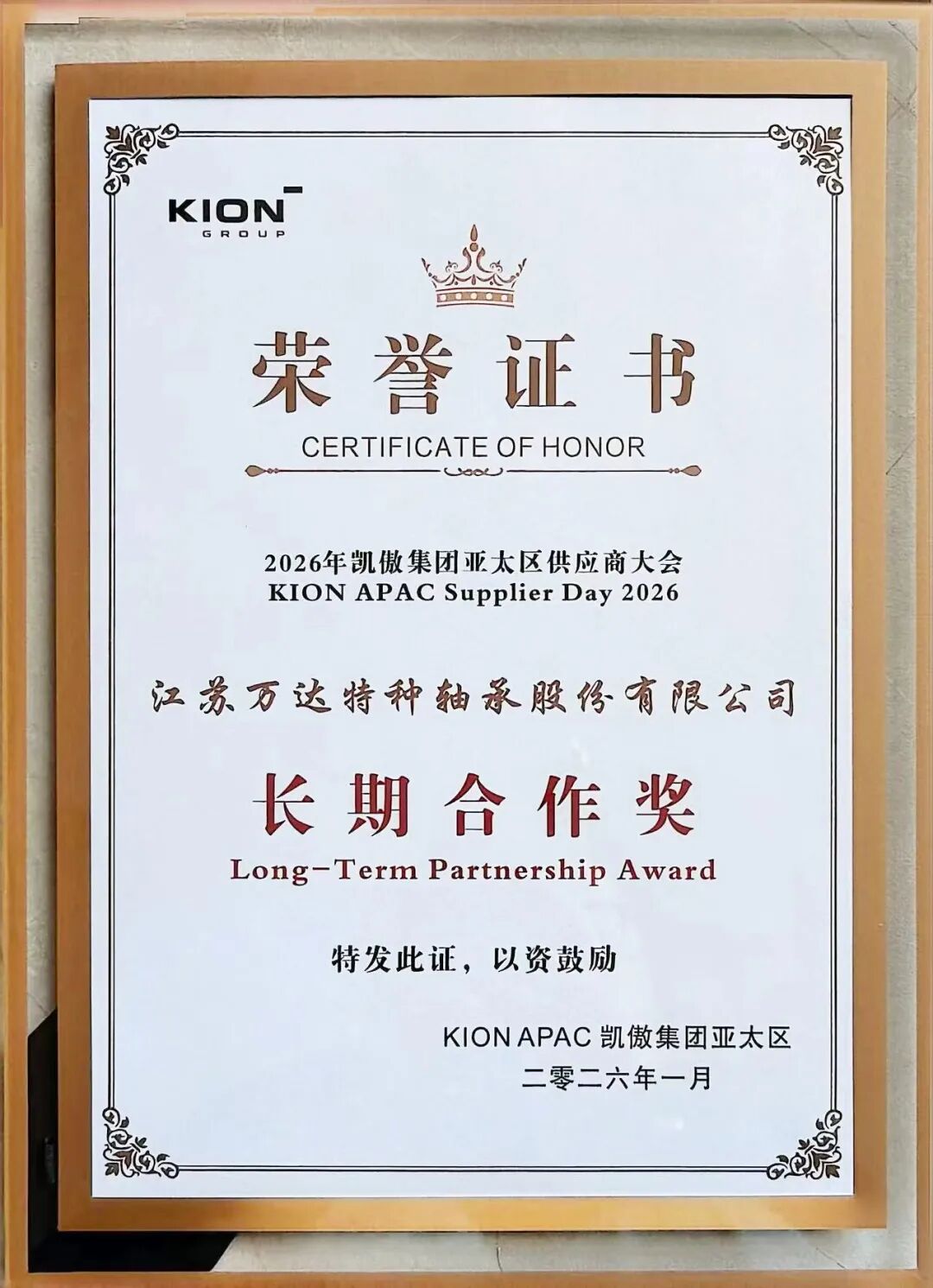 榮譽是肯定,更是前行的動力!萬達軸承,與全球伙伴同心同行,共赴新程!
