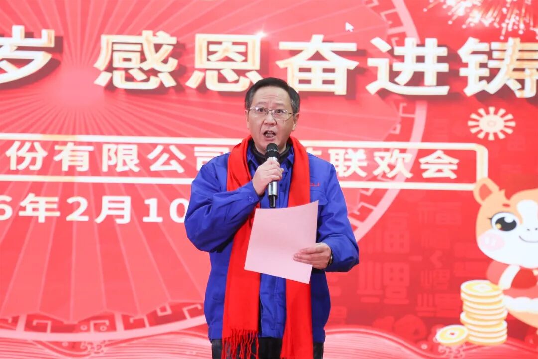 活動伊始,公司黨委書記、董事長、總經(jīng)理吳海曙發(fā)表熱情洋溢的新春致辭。他代表公司黨委和領(lǐng)導班子,向全體干部職工及家屬致以誠摯感謝和美好祝福。致辭中回顧了極不平凡的2025年,面對復雜市場環(huán)境,全體聯(lián)動人凝心聚力、迎難而上,公司主要經(jīng)營指標再創(chuàng)歷史新高。他強調(diào),2026年是公司“十五五”規(guī)劃的開局之年,公司將堅定信心、深化融合、創(chuàng)新驅(qū)動,全力以赴完成年度目標任務(wù),讓發(fā)展成果惠及每一位員工。