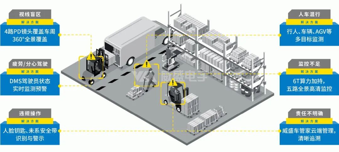 威盛電子最新推出的威力智能M168Pro叉車AI安全監(jiān)控套件,正是為了用AI填上這道致命縫隙。它以先進(jìn)的AI視覺技術(shù)為核心,為高危作業(yè)區(qū)劃出一道無形的“智能圍欄”,將疲勞駕駛、盲區(qū)碰撞、動(dòng)態(tài)側(cè)翻等關(guān)鍵風(fēng)險(xiǎn)一網(wǎng)打盡,以主動(dòng)式智能防御體系替代傳統(tǒng)被動(dòng)式監(jiān)管,為企業(yè)筑起全時(shí)段、無死角的本質(zhì)安全屏障。