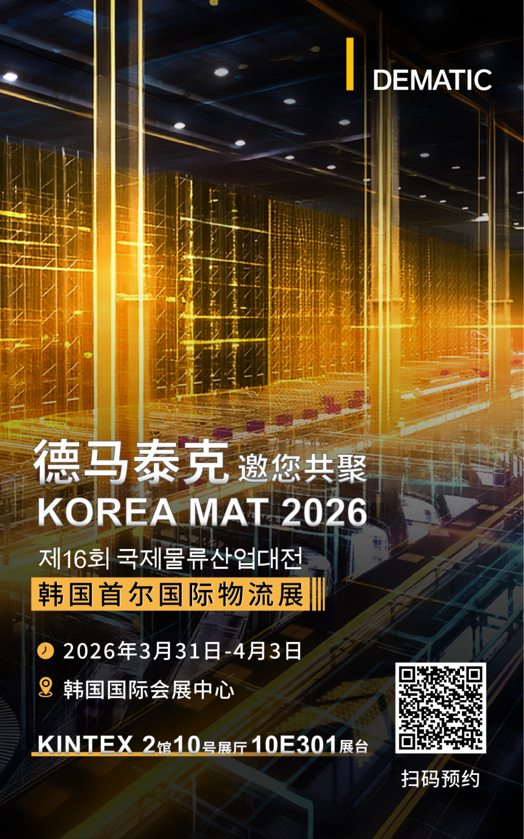 德馬泰克作為在亞洲擁有50多年經(jīng)驗(yàn)和立體化服務(wù)網(wǎng)絡(luò)的全球智慧物流專家,將亮相KINTEX 2館10號(hào)展廳10E301展位,以飛龍系統(tǒng)等深度洞悉客戶需求的創(chuàng)新解決方案,助力國(guó)內(nèi)企業(yè)開拓韓國(guó)及亞洲市場(chǎng)新效益。