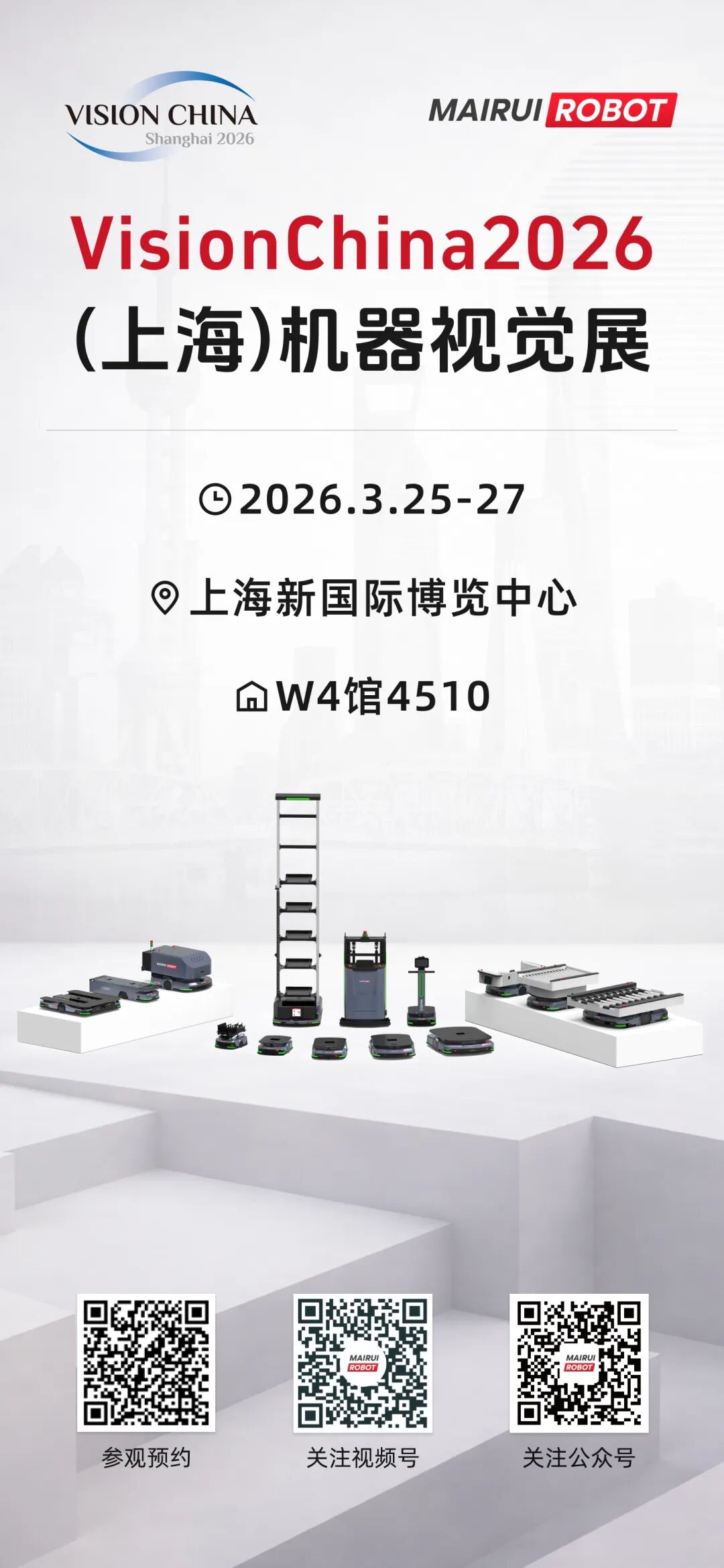 本次展會,邁睿機(jī)器人Mairui Robot 將攜多款智能物流機(jī)器人及自動化解決方案亮相展會現(xiàn)場,重點展示機(jī)器視覺技術(shù)與移動機(jī)器人(AMR)融合應(yīng)用,為制造企業(yè)提供更智能、更柔性的工廠物流解決方案。
