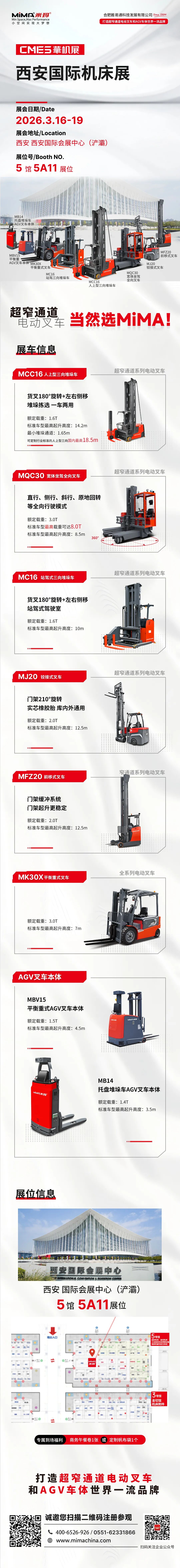 合肥搬易通(MiMA米瑪)憑借對(duì)技術(shù)的堅(jiān)定追求和持續(xù)創(chuàng)新,不斷研發(fā)并推出先進(jìn)的叉車(chē)技術(shù),為倉(cāng)儲(chǔ)物流領(lǐng)域注入源源不斷的創(chuàng)新活力。此次參展,合肥搬易通(MiMA)將攜多款備受矚目的明星展品,向全球展示我們技術(shù)實(shí)力與創(chuàng)新成果,期待與業(yè)界同仁交流、合作,共同推動(dòng)機(jī)床工具行業(yè)以及物流運(yùn)輸行業(yè)的飛速發(fā)展。
