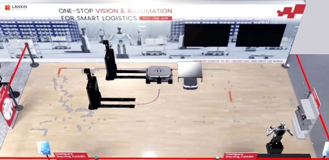 圍繞AI與智能物流的深度融合,藍(lán)芯機(jī)器人在展會現(xiàn)場系統(tǒng)展現(xiàn)了其智慧工廠物流解決方案:通過“3D視覺 + 工業(yè)AMR + 智能調(diào)度系統(tǒng)(RCS)”的協(xié)同架構(gòu),實現(xiàn)從感知、決策到執(zhí)行的全鏈路閉環(huán)。