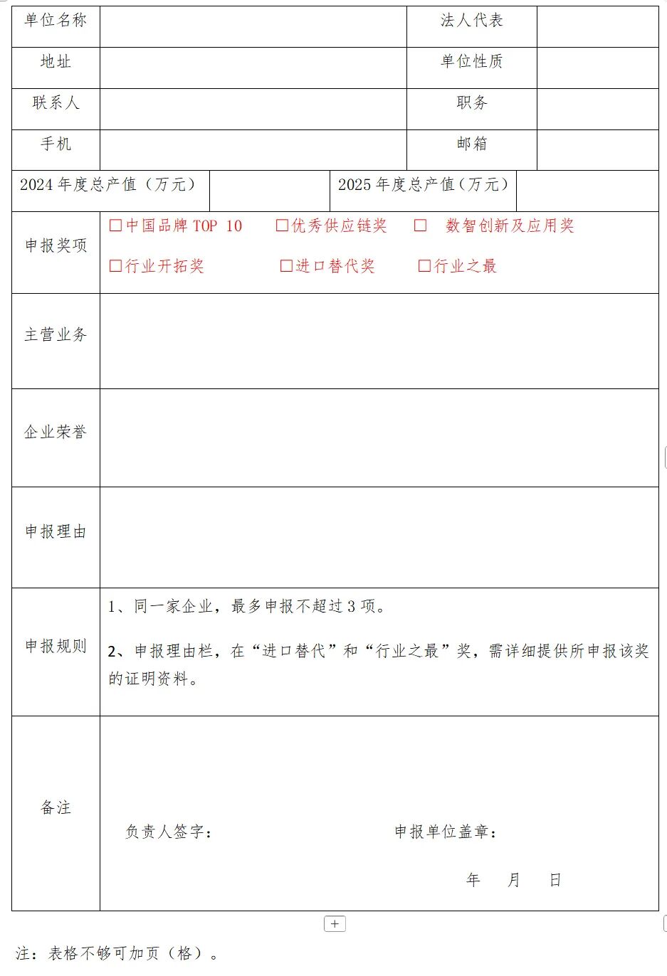 2、“進(jìn)口替代獎”與“行業(yè)之最”必須附詳細(xì)證明資料,否則視為無效申報。