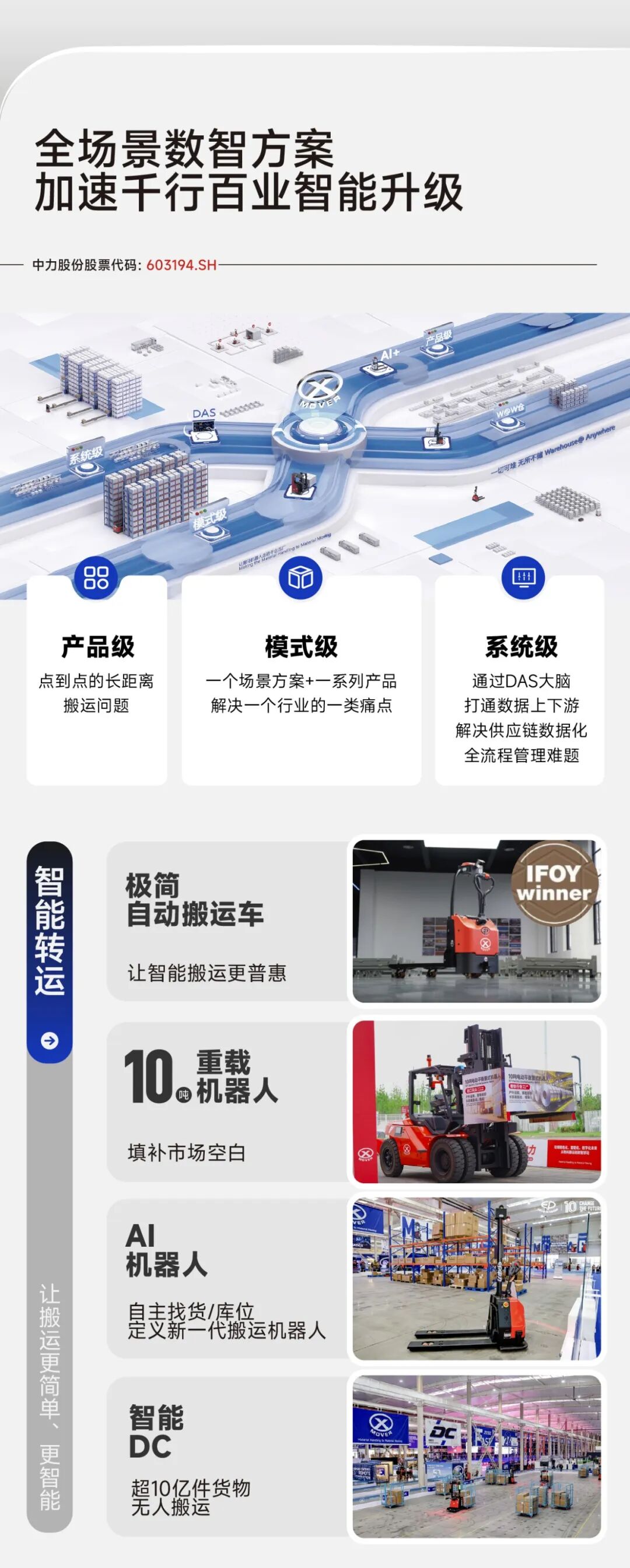 中力將以“解放人類勞動力”為使命,在實現(xiàn)從手動搬運(yùn)到電動搬運(yùn)的基礎(chǔ)上,正全力推動從柴油叉車到鋰電叉車的綠色革命,并且正在朝機(jī)器人搬運(yùn)的方向大步前進(jìn),努力實現(xiàn)綠色搬運(yùn)、智能搬運(yùn)和數(shù)字搬運(yùn)。