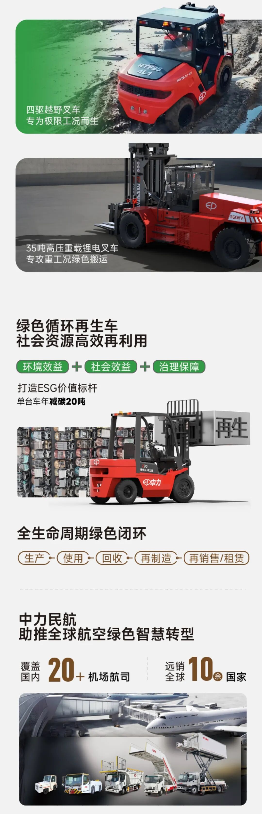 中力強(qiáng)調(diào)社會責(zé)任,堅持正念,致力于通過努力工作,為降低物料搬運(yùn)過程中的資源消耗及空氣污染做出貢獻(xiàn)。
