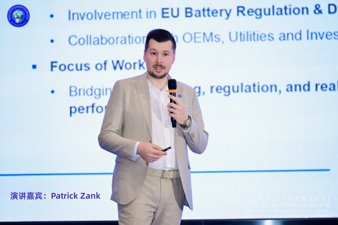 會(huì)上,Patrick Zank作《歐盟電池法規(guī)實(shí)施現(xiàn)狀及電池護(hù)照解讀分析》主題報(bào)告,系統(tǒng)闡釋了歐盟電池法規(guī)的最新實(shí)施動(dòng)態(tài),深入剖析了“電池護(hù)照”從概念到強(qiáng)制實(shí)施的技術(shù)細(xì)節(jié)與企業(yè)應(yīng)對(duì)策略。