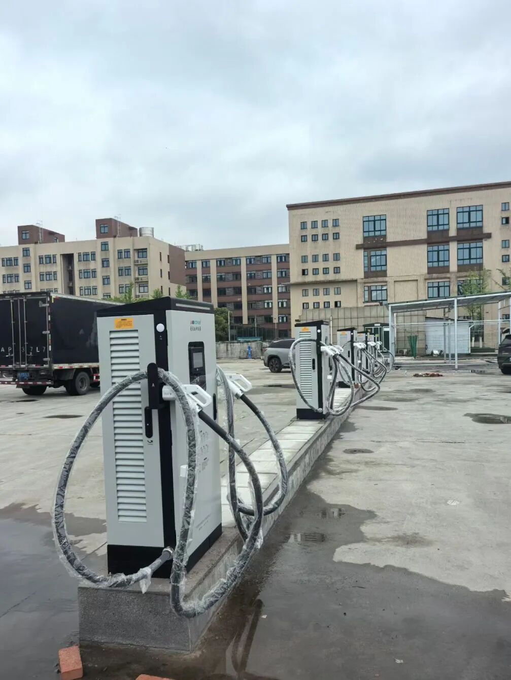 場站配置13臺120kW一體式直流充電樁,支持雙槍同充,最大輸出功率120kW。無論是日常通勤的私家車,還是周邊短途運營的物流車輛,都能快速完成補能,大幅提升出行效率。