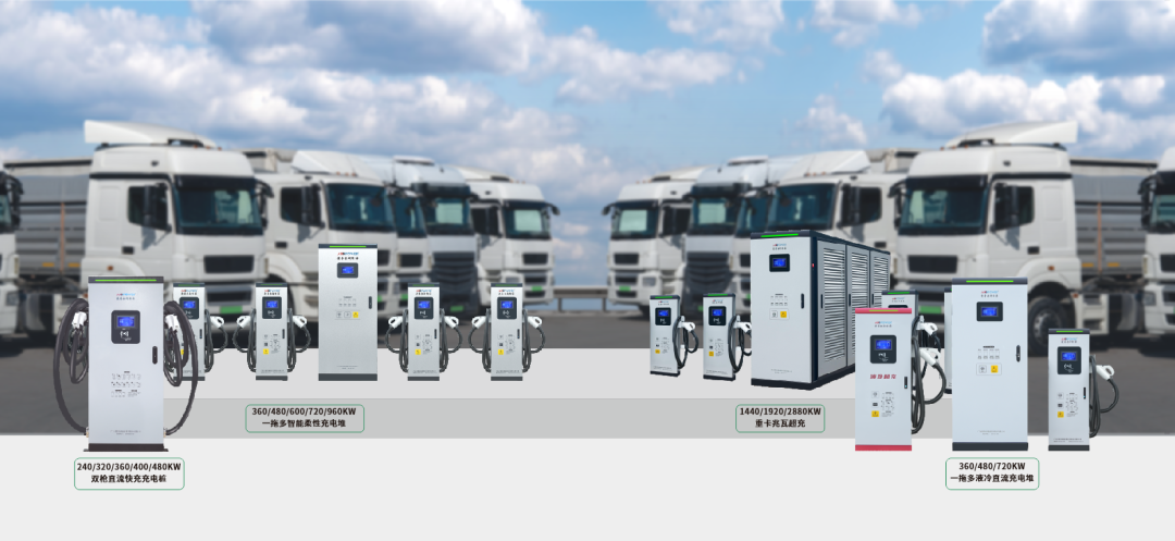 高功率輸出:聚焦重卡大功率、快速補能要求,功率配置靈活可選,從240-2880kW,單槍輸出250-400A,液冷終端可達600-800A,滿足各類場站需求;電壓覆蓋200-1000V,全面適配主流電動重卡。