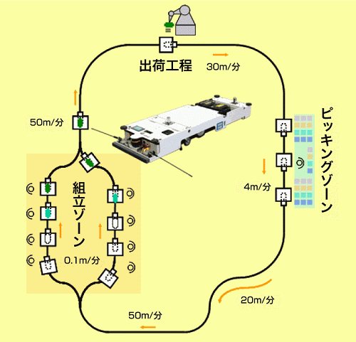 使用AGV的超低速(0.1m/分~50m/分)功能,建立組裝生產(chǎn)線的案例近年越來越多