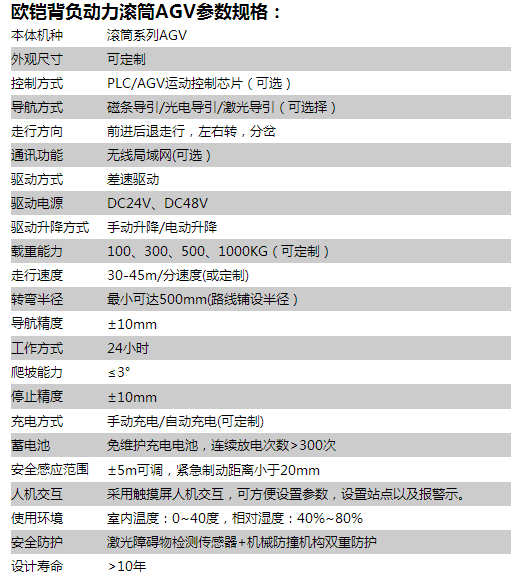 歐鎧新款背負自卸動力滾筒式AGV,做了新的改良,能夠與產(chǎn)線,特別是流水線的接駁平臺實現(xiàn)無縫對接,背負自卸滾筒式AGV應(yīng)用范圍廣,多與輸送線配合,形成全自動無人化搬運。