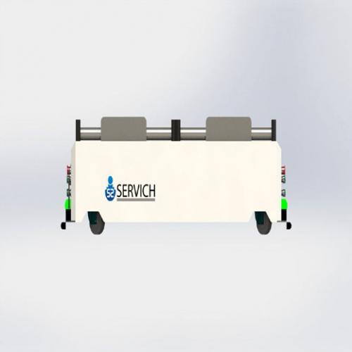 該自動(dòng)導(dǎo)引小車(AGV)的最大背負(fù)能力為500kg,單向/雙向行走可選擇,采用雙驅(qū)動(dòng)結(jié)構(gòu),驅(qū)動(dòng)模塊具有一鍵升降功能。小車帶有自動(dòng)滾筒,與工廠上、下料傳送機(jī)構(gòu)對(duì)接,自動(dòng)進(jìn)行貨物的傳送。在工廠使用過程中,AGV在上料點(diǎn)自動(dòng)與工廠上料機(jī)構(gòu)精確對(duì)接,由上料傳送機(jī)構(gòu)和AGV滾筒配合將貨物傳送至AGV,此后,AGV小車根據(jù)地面鋪設(shè)好的磁條及設(shè)定好的位置自動(dòng)行駛至下料點(diǎn),與工廠下料機(jī)構(gòu)精確對(duì)接,由滾筒和下料傳送機(jī)構(gòu)配合將貨物傳送至下料機(jī)構(gòu),實(shí)現(xiàn)貨物的自動(dòng)上、下料和運(yùn)送,整個(gè)運(yùn)輸過程無需人為干涉。