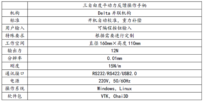 高度靈活的精密力反饋操作,獨(dú)特的Delta并聯(lián)機(jī)構(gòu)設(shè)計(jì),具有較高剛度和輸出力,自動(dòng)校準(zhǔn),定位精度高。高強(qiáng)度航空鋁合金本體,關(guān)鍵運(yùn)動(dòng)部件均國(guó)外進(jìn)口??刂破髦С侄喾N操作系統(tǒng),軟件開(kāi)放,可進(jìn)行二次開(kāi)發(fā),提供RS232、RS422、USB2.0多種接口。