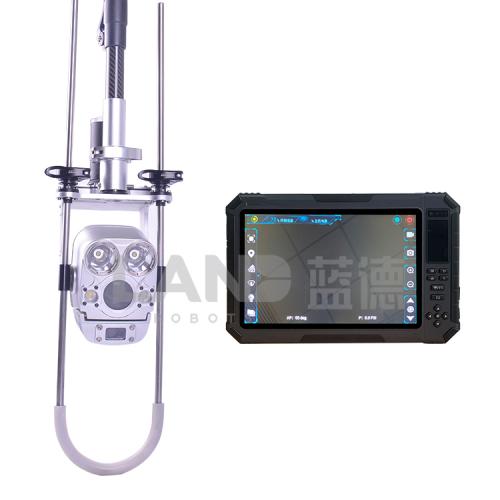 管道潛望鏡—無線雙模潛望鏡可以用于快速檢測(cè)、診斷管道內(nèi)部的堵塞、坍塌、破裂等缺陷狀況。在檢測(cè)過程中,客戶可以選擇采用有線或無線的方式將視頻信號(hào)、缺陷位置信號(hào)傳輸?shù)绞殖质娇刂瓶刂平K端上??蛻艨梢酝ㄟ^觸摸屏上的虛擬按鈕,控制機(jī)頭的俯仰,從而獲得管道缺陷位置處的清晰圖像信息;同時(shí)可以對(duì)缺陷進(jìn)行編碼和文字描述,并疊加字符到錄制的視頻文件中。
