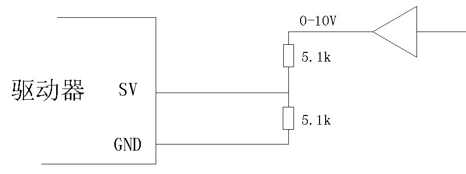 SV 用于模擬量輸入或者 PWM 輸入端,當(dāng)在 BLDC_2 軟件的輸入設(shè)置為“模擬輸入”或者 “PWM 輸入”方式時(shí),該端口輸入的量作為速度的給定值,下面是接線圖及說明。