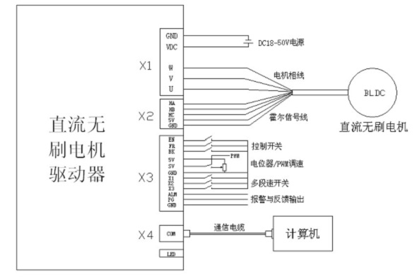 本公司研發(fā)生產(chǎn)的 BLDC 驅(qū)動(dòng)器是一款高性能,多功能,低成本的帶霍爾傳感器直流無刷驅(qū)動(dòng)器。 全數(shù)字式設(shè)計(jì)使其擁有靈活多樣的輸入控制方式,極高的調(diào)速比,低噪聲,完善的軟硬件保護(hù)功 能,驅(qū)動(dòng)器可通過串口通信接口與計(jì)算機(jī)相連,實(shí)現(xiàn) PID 參數(shù)調(diào)整,保護(hù)參數(shù),電機(jī)參數(shù),加減 速時(shí)間 等參數(shù)的設(shè)置,還可進(jìn)行 IO 輸入狀態(tài),模擬量輸入,告警狀態(tài)及母線電壓的監(jiān)視。
